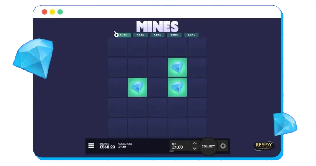 Unlike slot machines or roulette, Mines gives you control over your gameplay. The number of mines you choose and your decision of when to cash out directly affect your results.